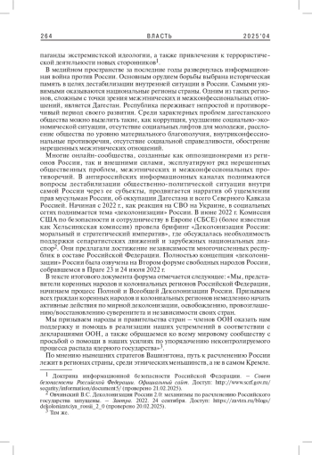 В статье автор анализирует ряд информационных каналов таких сервисов, как Telegram и YouTube, ориентированных на Республику Дагестан, деятельность которых направлена на разжигание межнациональной и межконфессиональной розни, сепаратистских и националистических настроений. Целью таких информационных каналов является формирование негативного образа России и образа колонизированных народов Дагестана.