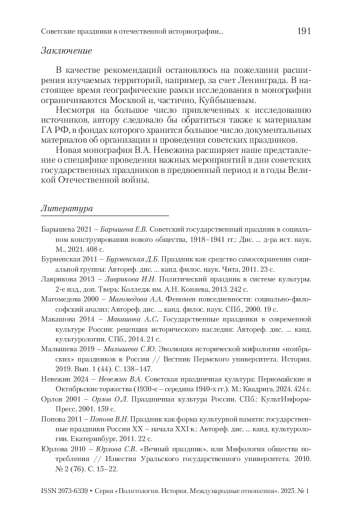 7. Невежин 2024 - Невежин В.А. Советская праздничная культура: Первомайские и Октябрьские торжества (1930-е - середина 1940-х гг.). М.: Квадрига, 2024. 424 с.