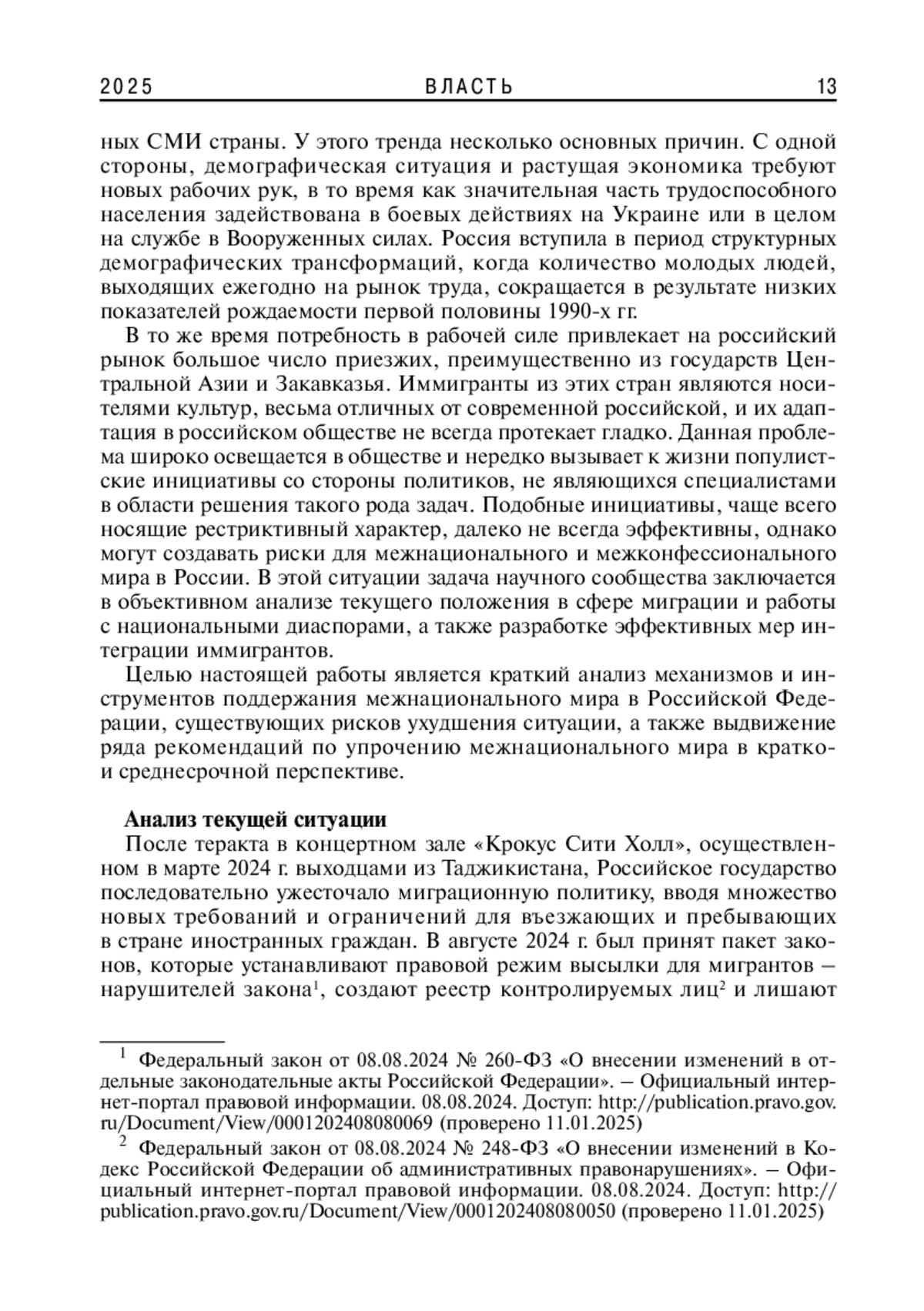 Теракт в «Крокус Сити Холле» стимулировал активную законодательную деятельность, направленную на ужесточение российской миграционной политики. При помощи анализа статистических данных и нормативно-правовой литературы, результатов социологических опросов, институционального и структурно-функционального подходов авторы показывают, что исключительно ограничительные инициативы в долгосрочной перспективе недостаточно эффективны, поскольку несут такие риски, как а) снижение темпов экономического роста; б) этническая анклавизация; в) усиление социальной и межнациональной напряженности. Избежать указанных рисков и интенсифицировать включение иммигрантов в российское общество позволят меры стимулирующего характера, в т. ч. домиграционная подготовка, организованный набор иностранной рабочей силы и адаптационные классы для детей-мигрантов.