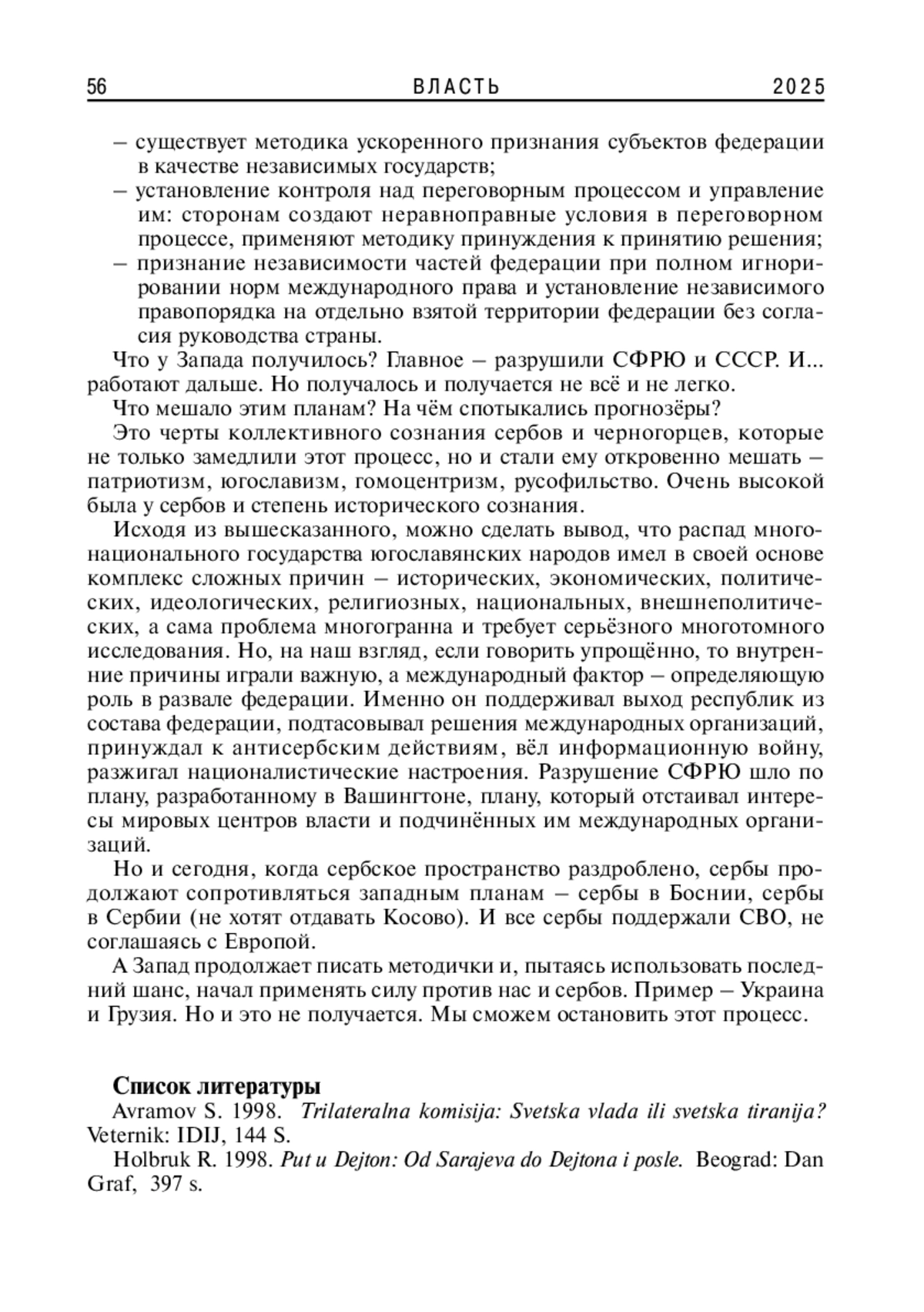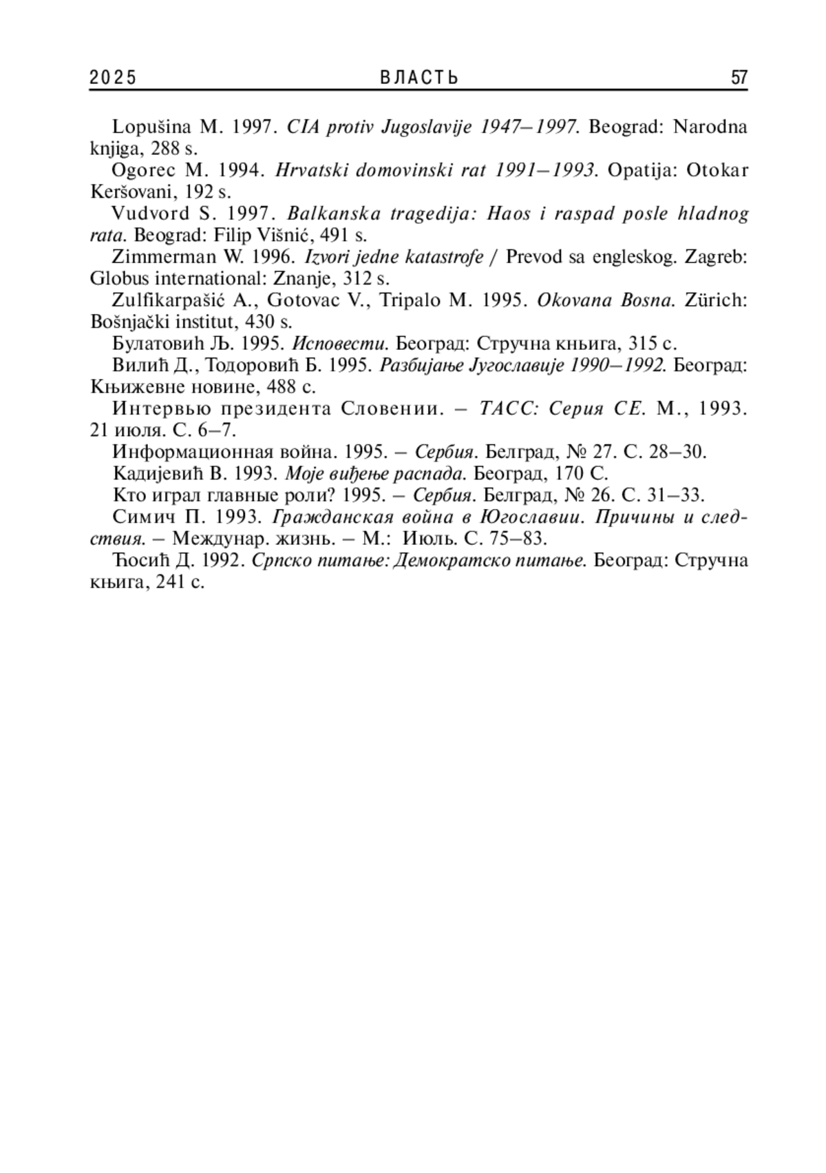 13. Симич П. 1993. Гражданская война в Югославии. Причины и следствия. - Международная жизнь. - М.: Июль. С. 75-83.