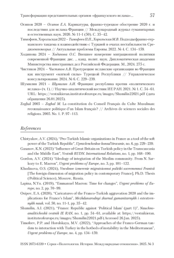 5. Осипов 2020 - Осипов Е.А. Карикатуры, франко-турецкое обострение 2020 г. и последствия для ислама Франции // Международный журнал гуманитарных и естественных наук. 2020. № 11-1 (50). С. 35-42.