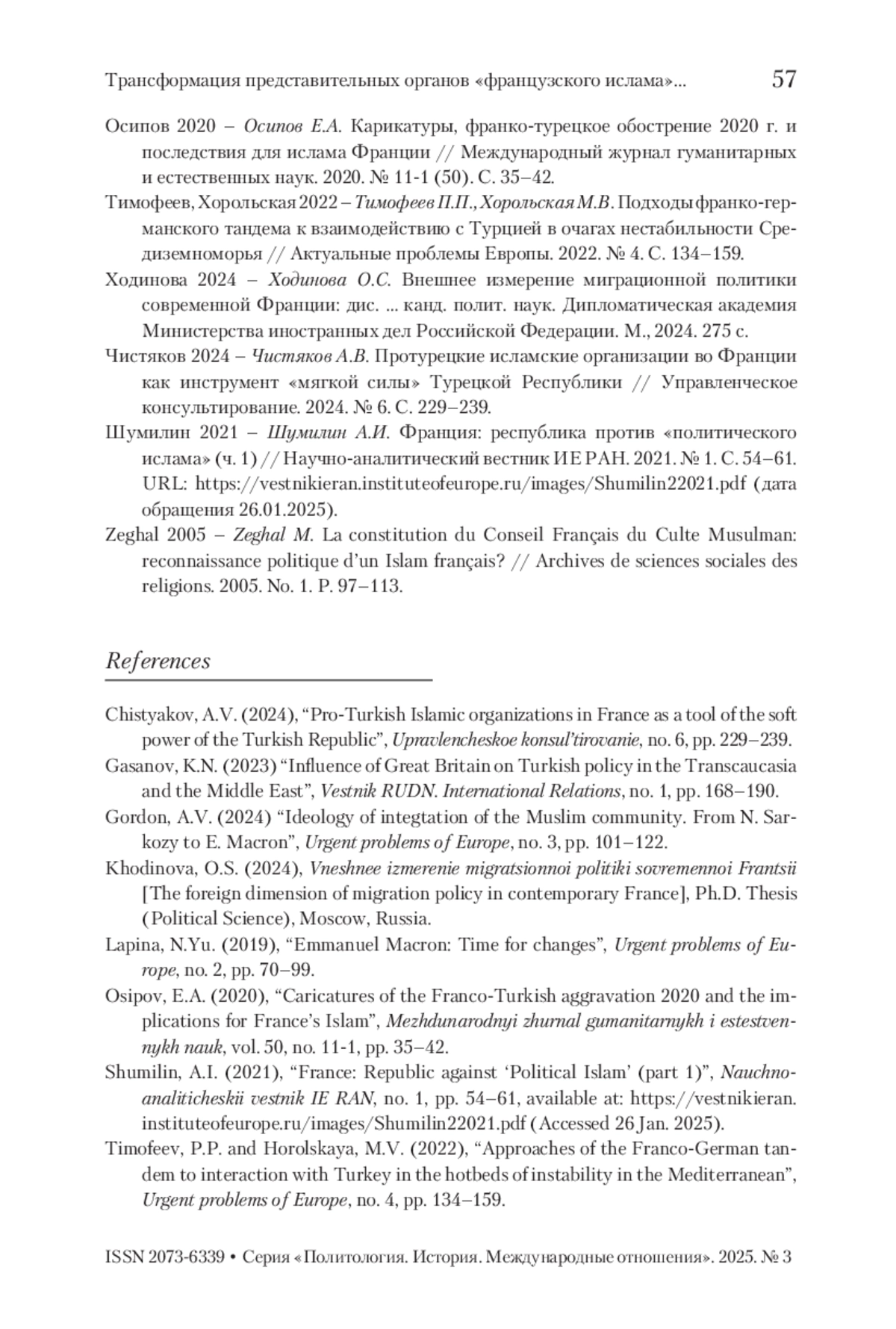 2. Гордон 2024 - Гордон А.В. Идеология интеграции мусульманского сообщества от Н. Саркози к Э. Макрону // Актуальные проблемы Европы. 2024. № 3. С. 101-122.