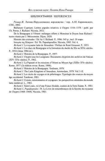 16. Richard J., Papadopoulos Th. Le Livre de remembrances de la Secrète du royaume de Chypre (1468-1469). Nicosia, 1983.