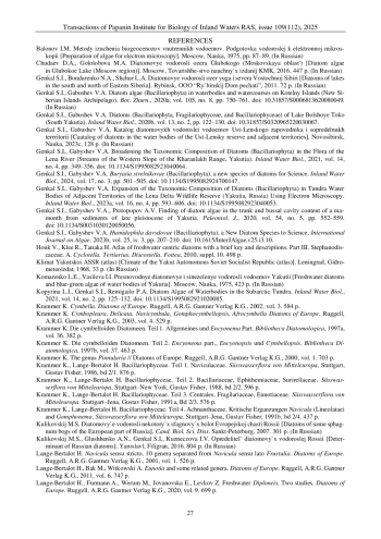 16. Genkal S.I., Gabyshev V.A. Buryatia strelnikovae (Bacillariophyta), a new species of diatoms for Science // Inland Water Biology. 2024. Vol. 17. № 3. P. 501-505. DOI: 10.1134/S1995082924700147