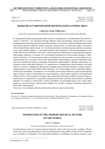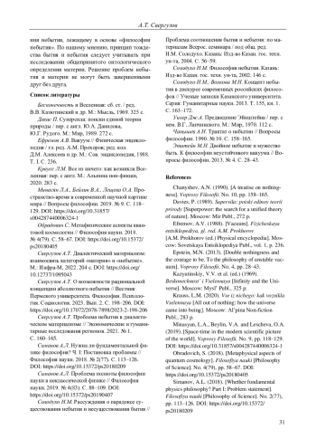 8. Свергузов А.Т. О возможности рациональной концепции абсолютного небытия // Вестник Пермского университета. Философия. Психология. Социология. 2023. Вып. 2. С. 198-206. DOI: 10.17072/2078-7898/2023-2-198-206 EDN: QYRHXN