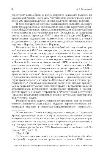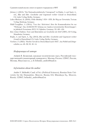 1. Белинский 2017 - Белинский А.В. «Он снова здесь»: Дело «Национал-социалистического подполья» и угроза правого терроризма в Германии // Актуальные проблемы Европы. 2017. № 4. С. 136-162.