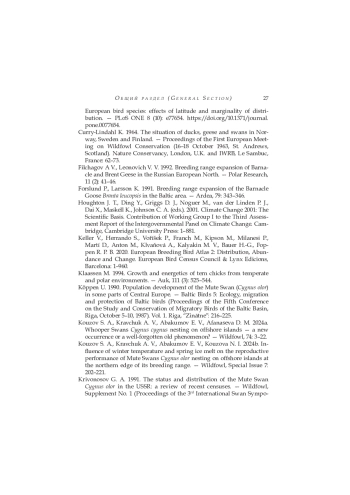 59. Boom M. P., van der Jeugd H. P., Steffani B., Nolet B. A., Larsson K., Eichhorn G. 2022. Postnatal growth rate varies with latitude in range-expanding geese: The role of plasticity and day length. - Journal of Animal Ecology, 91: 417-427.