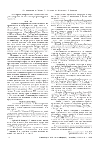 1. Блиновская Я. Ю., Якименко А. Л. Анализ загрязнения акватории залива Петра Великого (Японского моря) микропластиком // Успехи современного естествознания, 2018, № 1,с. 68-73.