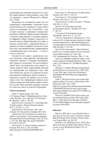 Статья: КОНЦЕПЦИЯ СМЕРТИ АВТОРА И ПРОБЛЕМА ПОСТТВОРЧЕСТВА В ЦИФРОВУЮ ЭПОХУ (2024)