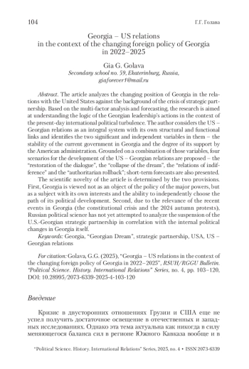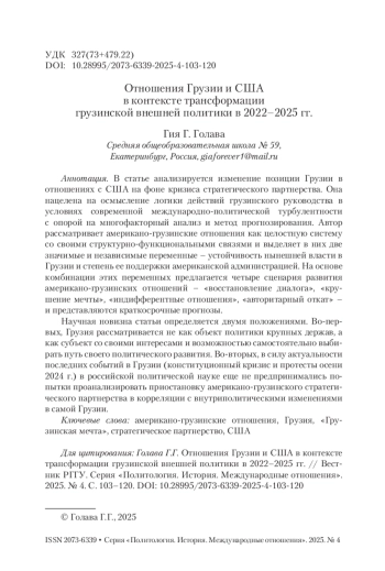 2. Гегелашвили 2020 - Гегелашвили Н.А. Грузия в фокусе внешнеполитических приоритетов США // Мировая экономика и международные отношения. 2020. № 1. C. 119-128.