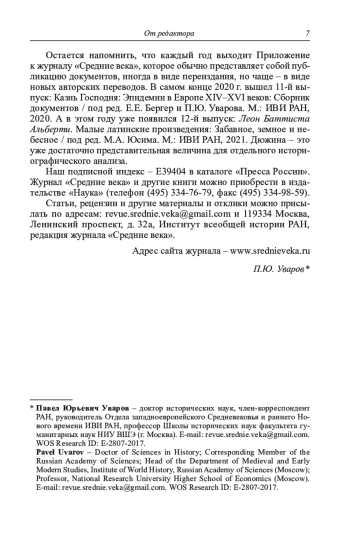 УВАРОВ П. Ю. ОТ РЕДАКТОРА // СРЕДНИЕ ВЕКА. 2021. Т. 82 № 3