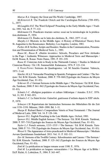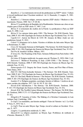 13. Bériou N. Les sermons latins après 1200 // The Sermon / Ed. B.M. Kienzle. Turnhout, 2000. P. 363-448 (Typologie des Sources du Moyen Âge Occidental; Fasc. 81-83).