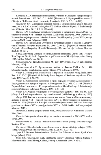 17. Franz M. Idea panstwa kozackiego na ziemiach ukrainnych w XVI-XVII wieku. Toruń, 2006. EDN: QPGJPN