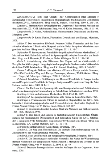 40. Schillinger J. Franzosen und Türken in deutschen Flugschriften des XVII. Jahrhunderts // Wahrnehmungsgeschichte und Wissensdiskurs im illustrierten Flugblatt der Frühen Neuzeit / Hrsg. von W. Harms. Basel, 2002. S. 169-187.