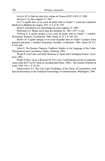 17. Norberg D. A quelle époque a-t-on cessé de parler latin en Gaule? // Annales: Économies, Sociétés, Civilisations. 1966. Année 21, N 2. P. 346-356.