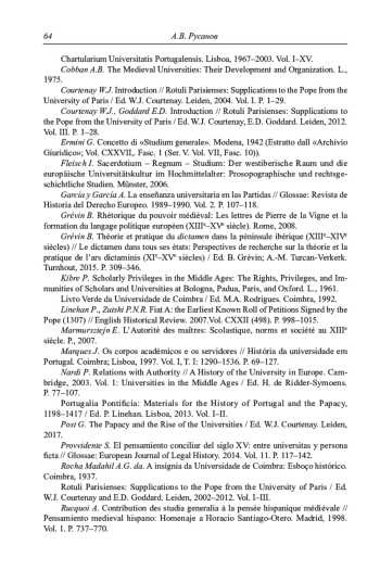 25. Marques J. Os corpos académicos e os servidores // História da universidade em Portugal. Coimbra; Lisboa, 1997. Vol. I, T. I: 1290-1536. P. 69-127.