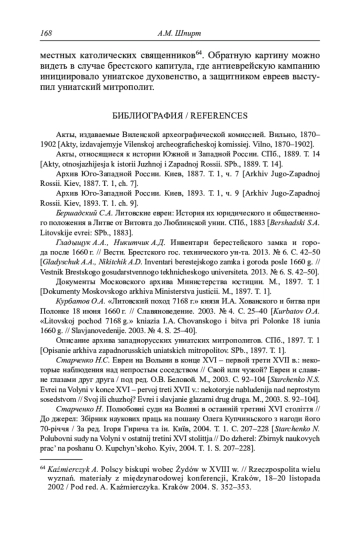ШПИРТ А. М. ЕВРЕЙСКО-ХРИСТИАНСКИЕ ОТНОШЕНИЯ НА ПЕПЕЛИЩЕ: СПОР ВОКРУГ ЦЕРКОВНОГО УЧАСТКА В БРЕСТЕ В 1669-1671 ГГ. // СРЕДНИЕ ВЕКА. 2021. Т. 82 № 4