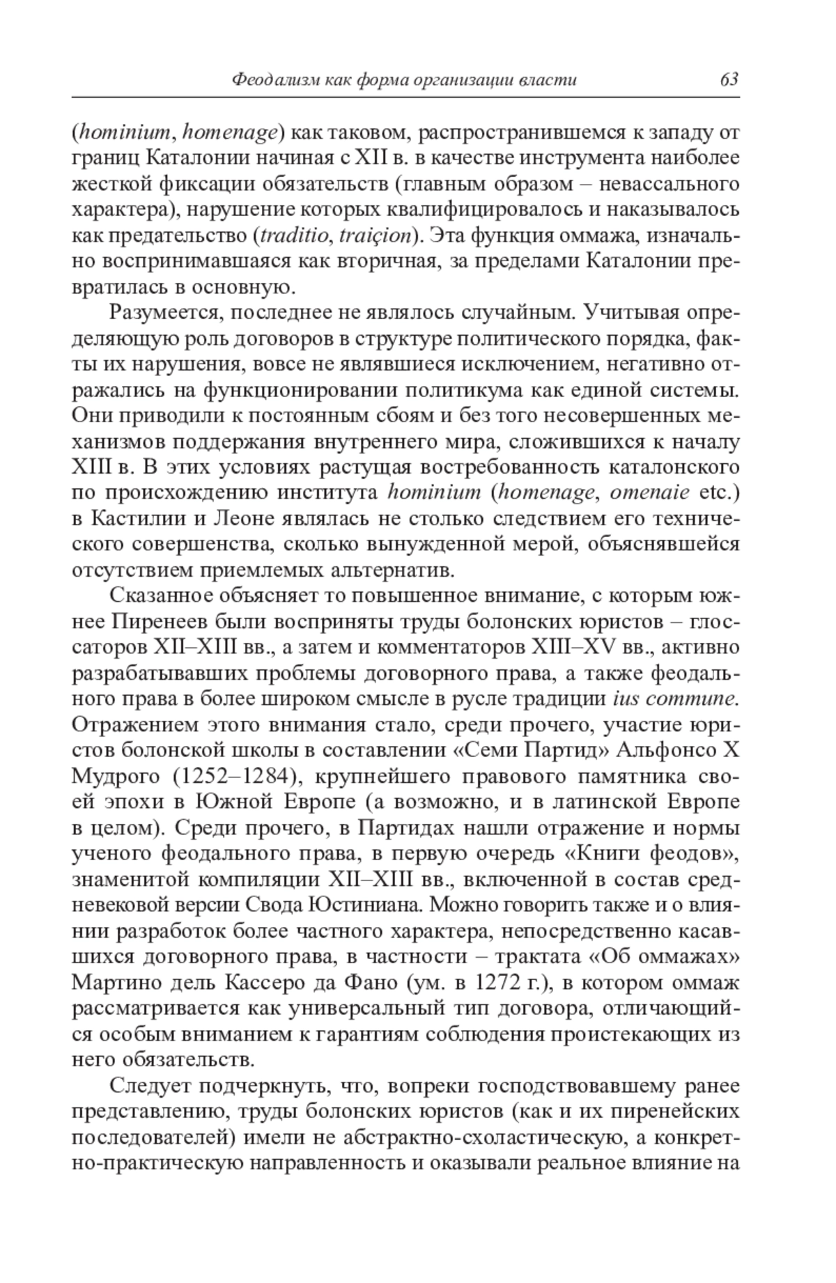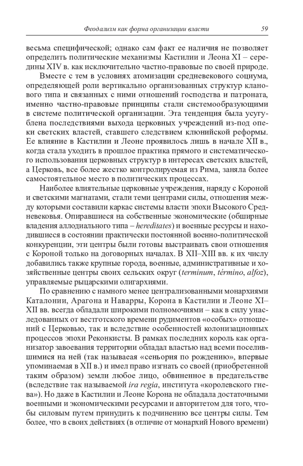 Если не считать самоцелью создание новых научных понятий в русле гиперкритического подхода к оценке устоявшейся понятийной системы1, то, при всех его известных недостатках2, сложно найти термин, более приемлемый, чем феодализм, для описания политической системы, пришедшей на смену как гражданским общинам античного типа, так и опиравшейся на них бюрократической вертикали времен Поздней империи. Уже к середине XI в. публичноправовая составляющая политической системы в Кастилии и Леоне была представлена почти исключительно Церковью – преемником античной (в том числе политической) традиции, сохранившим представления о равенстве людей (рудименте античного гражданского равенства) и единстве общества – разумеется, лишь перед Богом