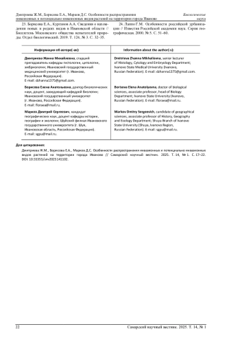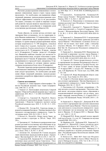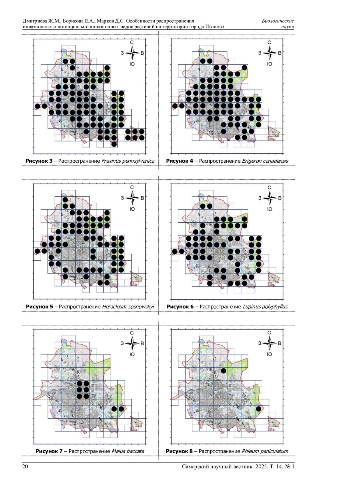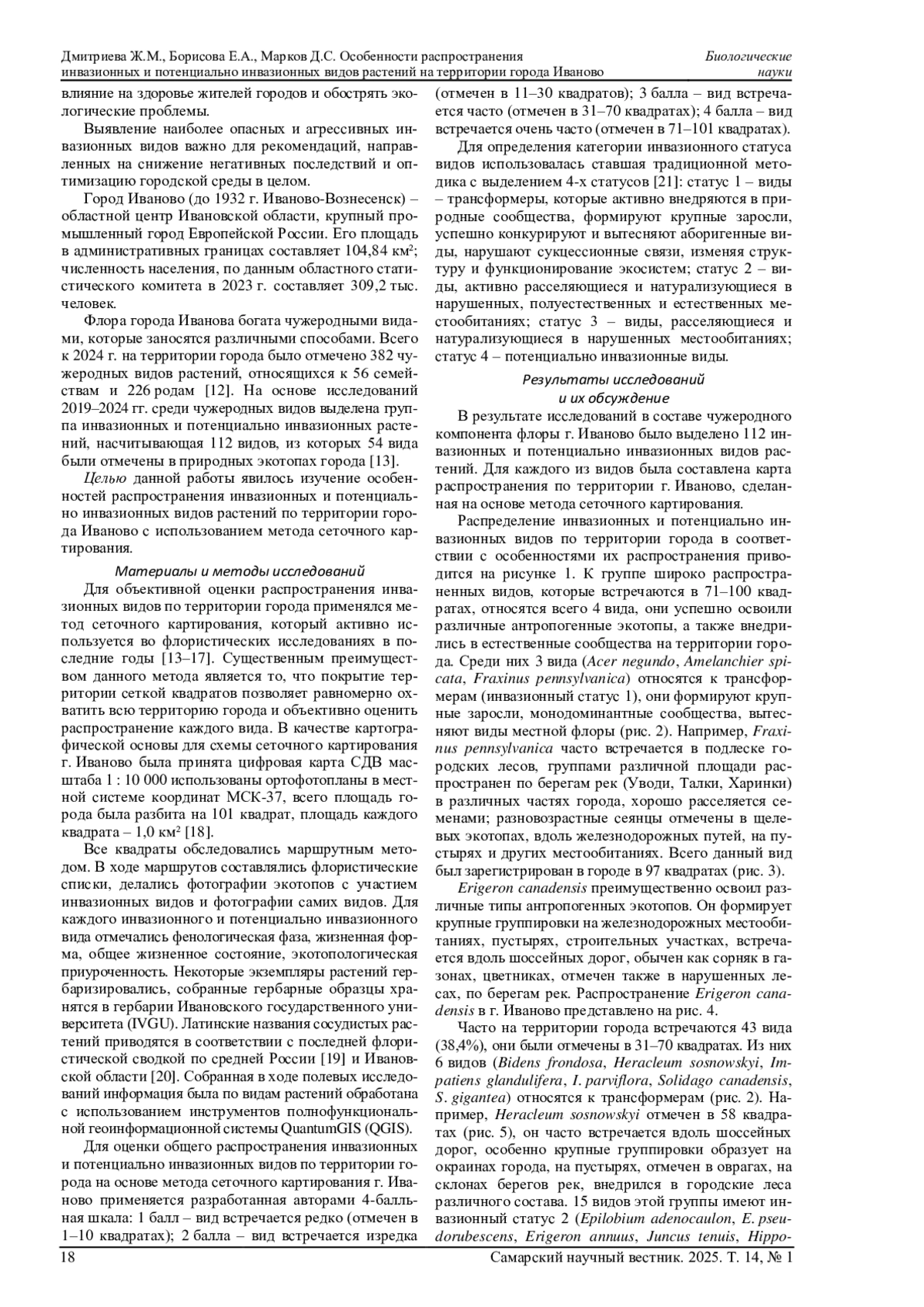 Статья: ОСОБЕННОСТИ РАСПРОСТРАНЕНИЯ ИНВАЗИОННЫХ И ПОТЕНЦИАЛЬНО ИНВАЗИОННЫХ ВИДОВ РАСТЕНИЙ НА ТЕРРИТОРИИ ГОРОДА ИВАНОВО (2025)
