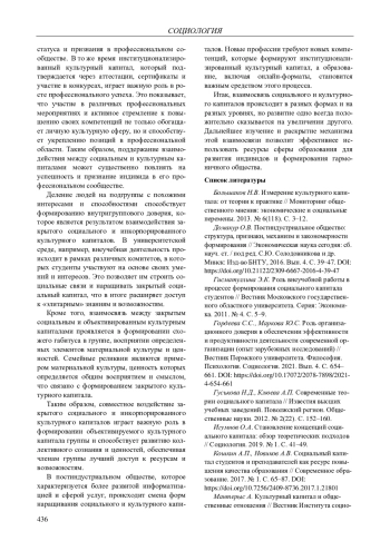 1. Большаков Н.В. Измерение культурного капитала: от теории к практике // Мониторинг общественного мнения: экономические и социальные перемены. 2013. № 6(118). С. 3-12. EDN: RYFKAN