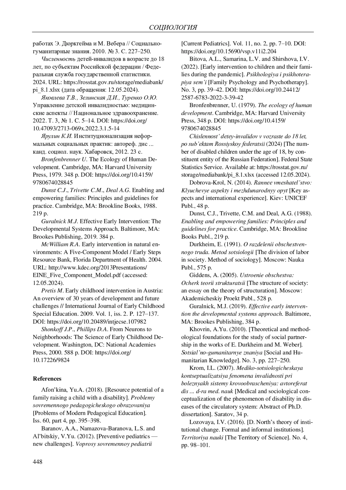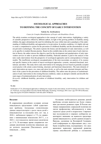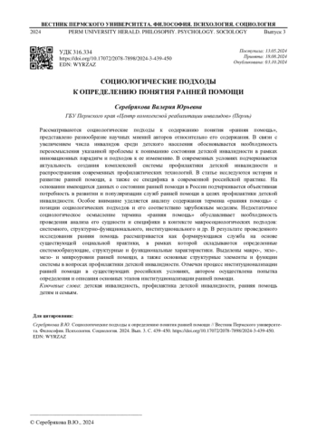 Статья: СОЦИОЛОГИЧЕСКИЕ ПОДХОДЫ К ОПРЕДЕЛЕНИЮ ПОНЯТИЯ РАННЕЙ ПОМОЩИ (2024)
