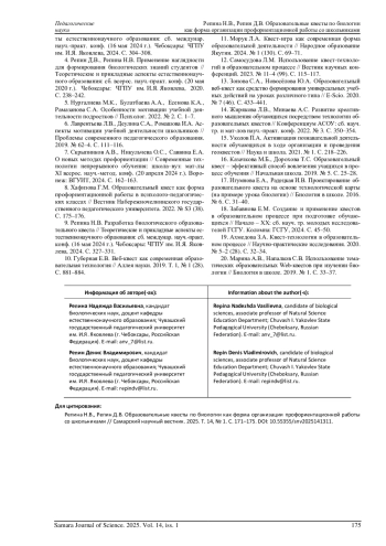 РЕПИНА Н. В., РЕПИН Д. В. ОБРАЗОВАТЕЛЬНЫЕ КВЕСТЫ ПО БИОЛОГИИ КАК ФОРМА ОРГАНИЗАЦИИ ПРОФОРИЕНТАЦИОННОЙ РАБОТЫ СО ШКОЛЬНИКАМИ // САМАРСКИЙ НАУЧНЫЙ ВЕСТНИК. 2025. ТОМ 14, № 1