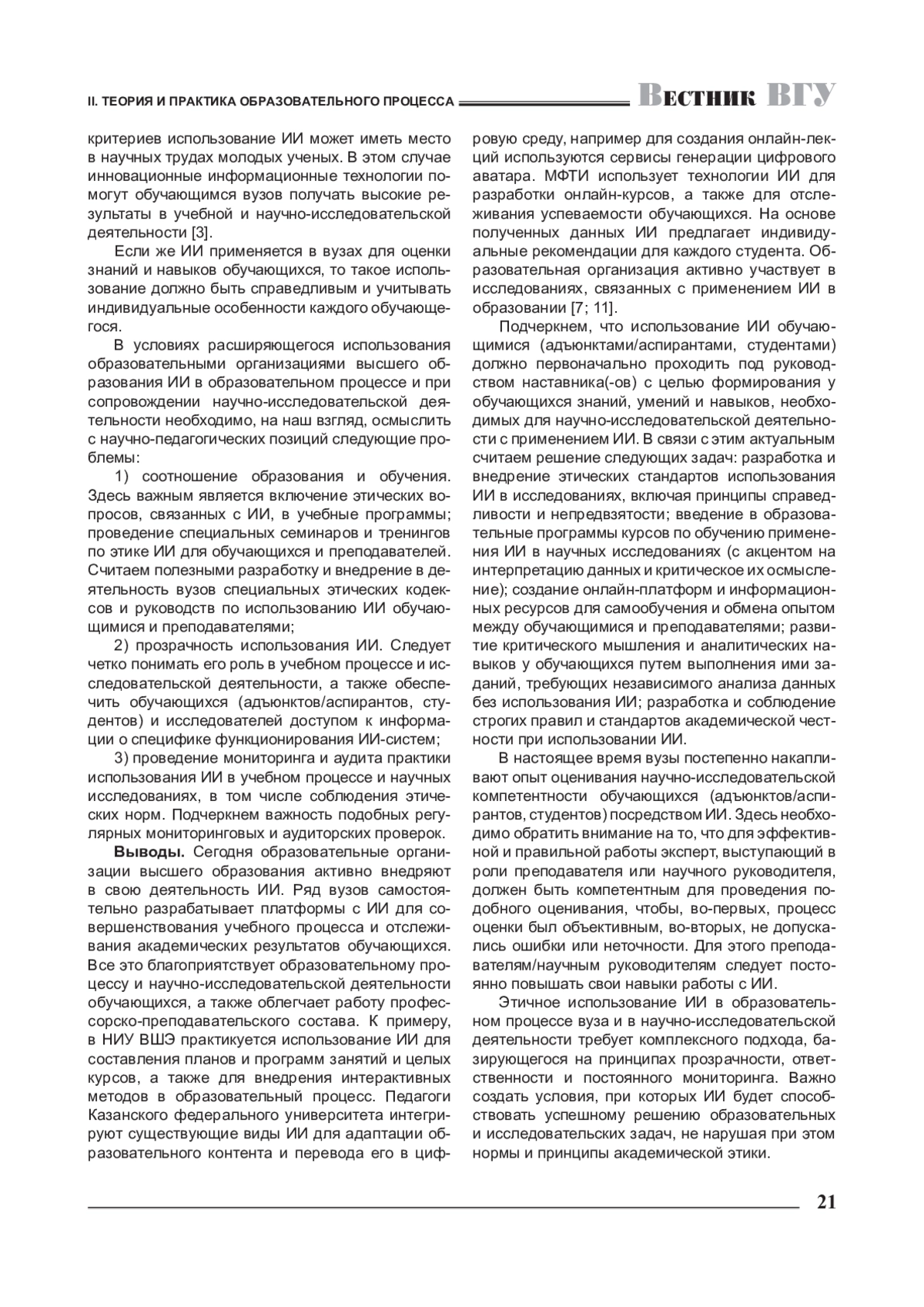 5. Везетиу Е. В. Искусственный интеллект как инновационный инструмент внедрения современных средств обучения в образовательный процесс высших учебных заведений / Е. В. Везетиу, Н. Б. Ромаева // Проблемы современного педагогического образования. - 2022. - № 77-2. - URL: https://cyber-leninka.ru/article/n/iskusstvennyy-intellekt-kak-innovat-sionnyy-instrument-vnedreniya-sovremennyh-sredstv-obucheniya-v-obrazovatelnyy-protsess-vysshih (дата обращения: 22.06.2024). EDN: YNVYDY