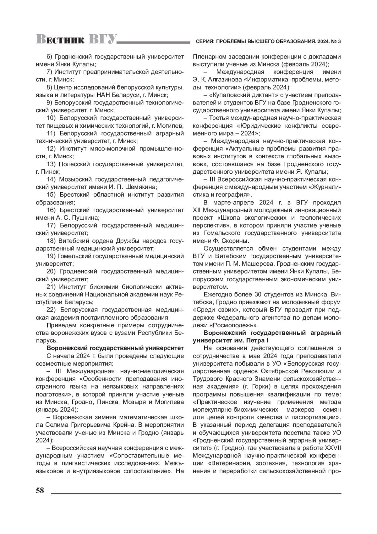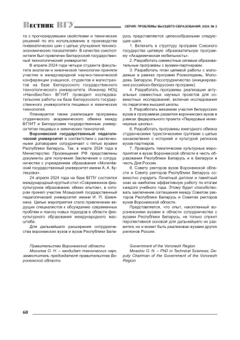 В статье рассматриваются вопросы образовательного и научного сотрудничества между вузами Центральной России и Беларуси. Представлен успешный опыт реализации совместных научных и образовательных проектов, предложены рекомендации для расширения взаимодействия.