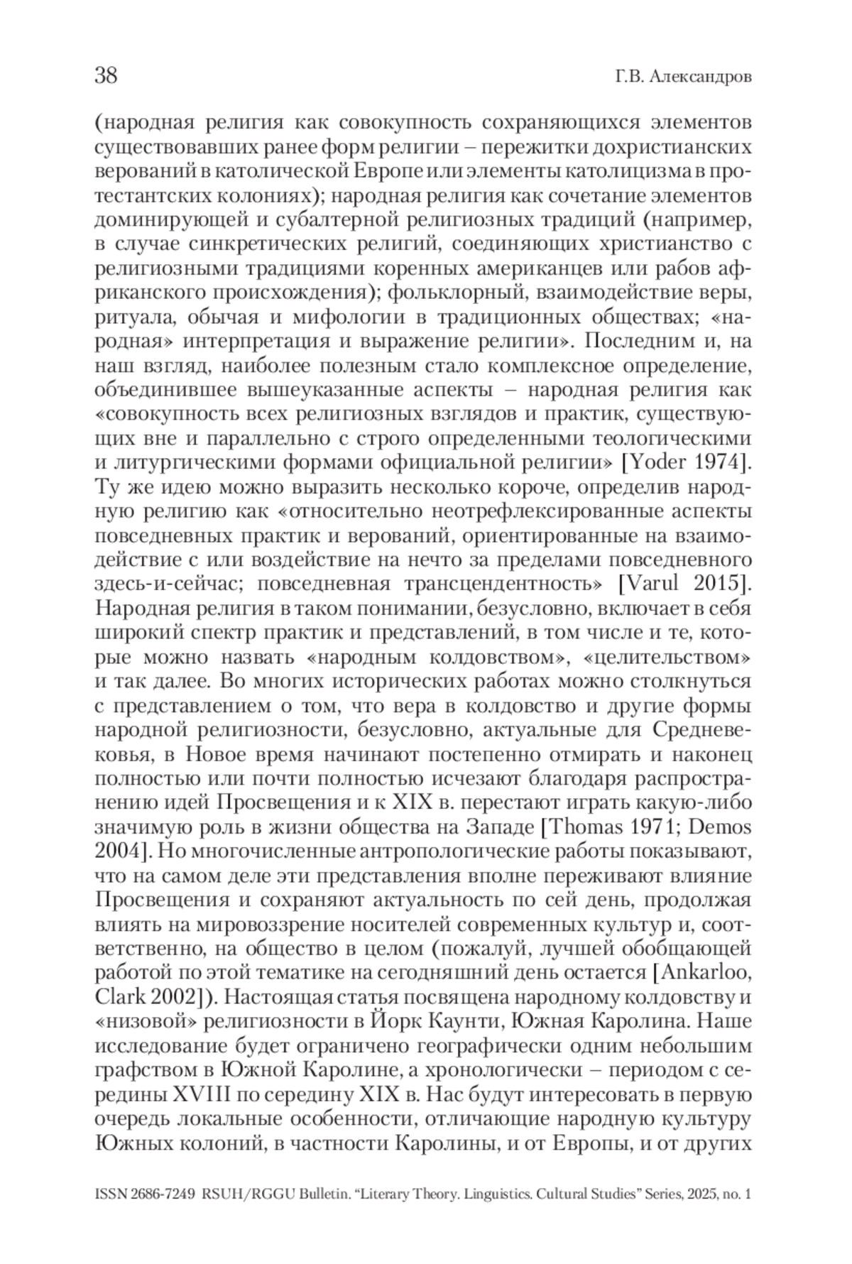15. Yoder 1974 - Yoder D. Toward a definition of folk religion // Western Folklore. 1974. Vol. 33. No. 1. P. 1-15.