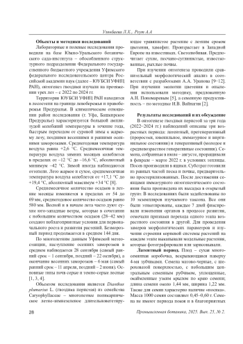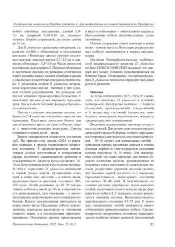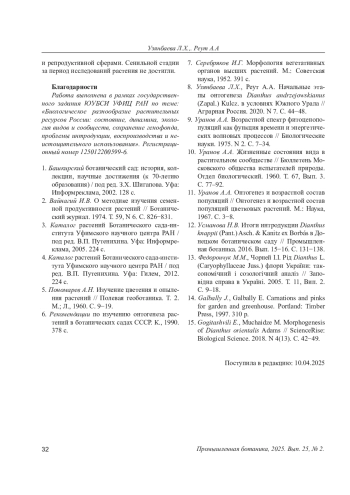 Статья: ОСОБЕННОСТИ ОНТОГЕНЕЗА DIANTHUSPLUMARIUS L. ПРИ ИНТРОДУКЦИИ В УСЛОВИЯХ БАШКИРСКОГО ПРЕДУРАЛЬЯ (2025)