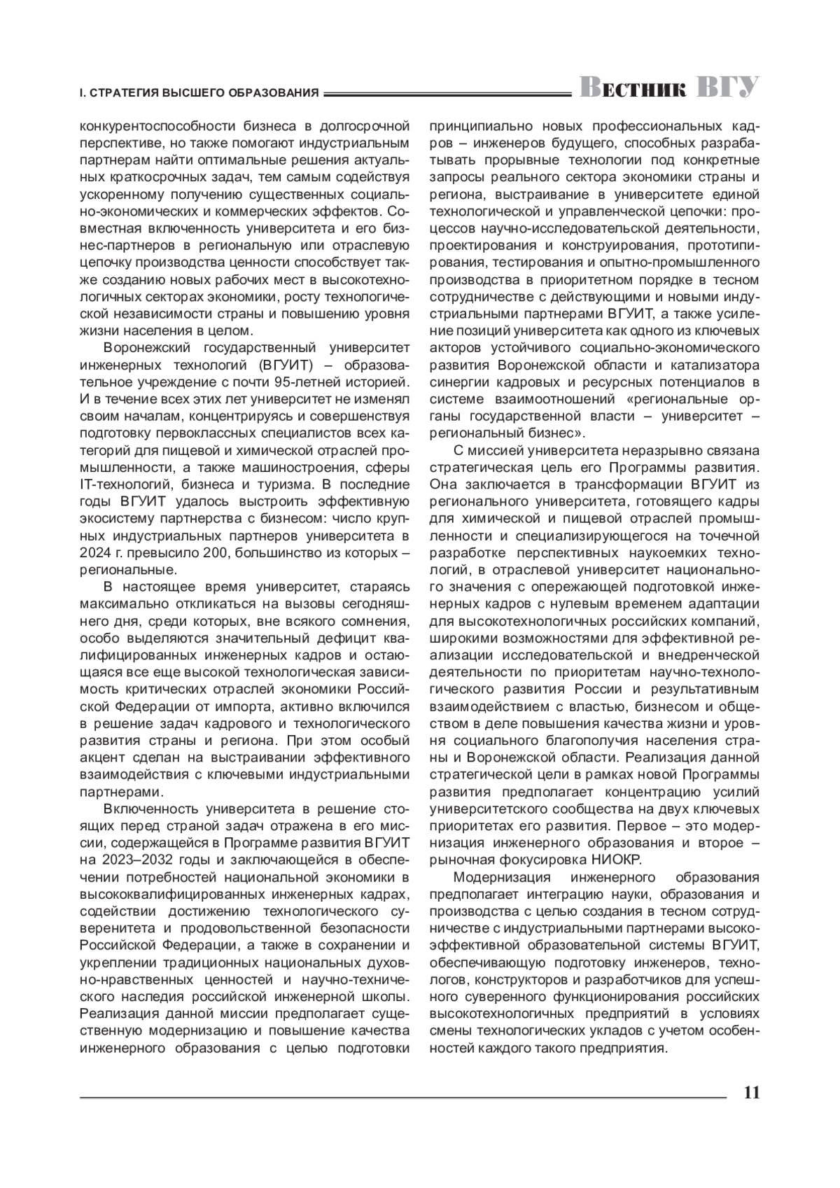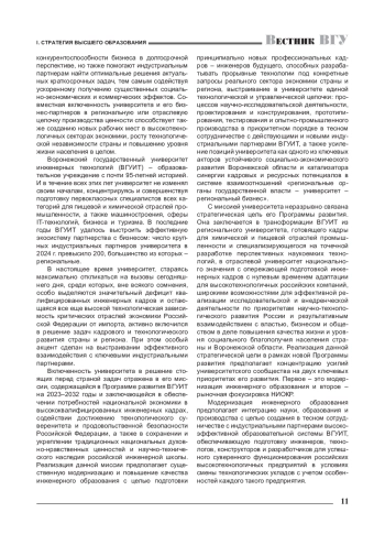 Статья: РОЛЬ УНИВЕРСИТЕТА В ПОДГОТОВКЕ ИНЖЕНЕРНЫХ КАДРОВ ДЛЯ ОБЕСПЕЧЕНИЯ ТЕХНОЛОГИЧЕСКОГО СУВЕРЕНИТЕТА РОССИИ (НА ПРИМЕРЕ ВОРОНЕЖСКОГО ГОСУДАРСТВЕННОГО УНИВЕРСИТЕТА ИНЖЕНЕРНЫХ ТЕХНОЛОГИЙ) (2024)