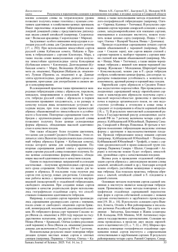 18. Минин А.Н., Нечаева Е.Х., Мельникова Н.А. Селекция и сортоизучение абрикоса в условиях лесостепи Среднего Поволжья // Известия Самарской государственной сельскохозяйственной академии. 2016. № 2. С. 3-7. EDN: WKBSFN