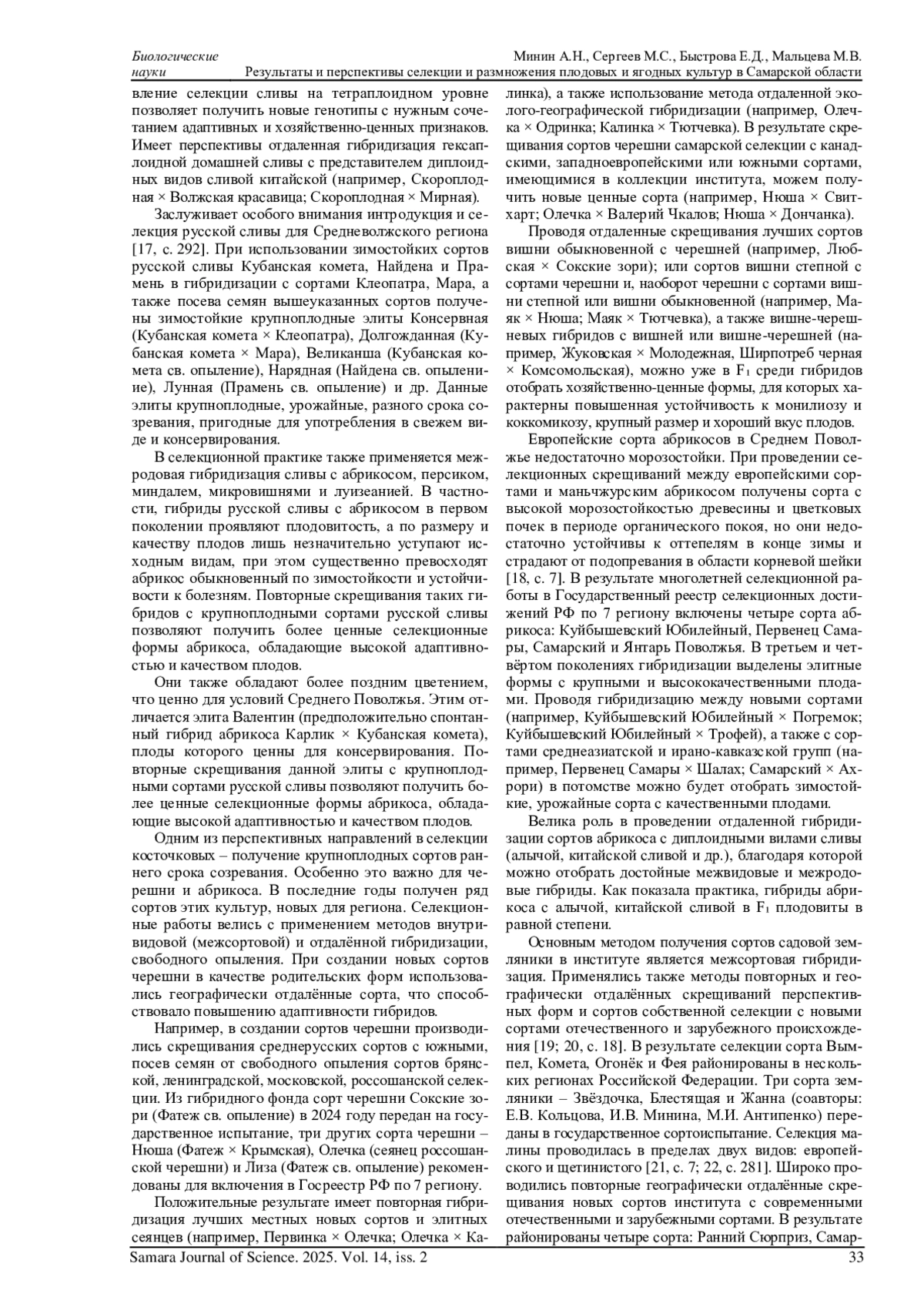 17. Минин А.Н., Нечаева Е.Х., Мельникова Н.А. Создание и изучение элит сливы русской в условиях Самарской области // Инновационные достижения науки и техники АПК: сб. науч. тр. Кинель: РИО СГСХА, 2018. С. 291-294. EDN: VUKRPW