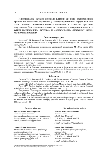 1. Замятин Ю. П., Романов Б. Ф., Тараканов Б. И. Факторная структура физической подготовленности борцов вольного стиля // Спортивная борьба: Ежегодник. М.: Физкульура и спорт, 2011. С. 11-12.