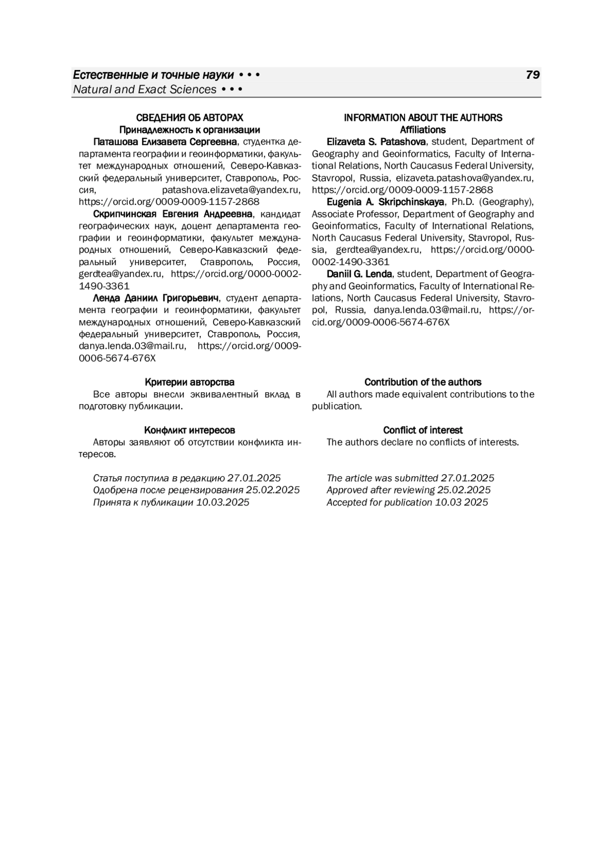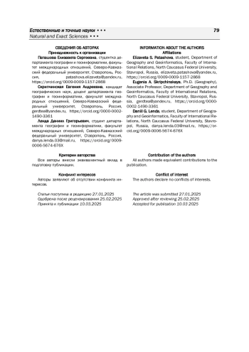 6. Паташова Е. С. Интенсивность геохимического загрязнения почвенного покрова в пределах города Изобильного Ставропольского края // Географические проблемы развития стран и регионов: сборник материалов III Международной научно-практической конференции / под ред. Н. А. Щитовой. Ставрополь: СКФУ, 2024. С. 334-340.