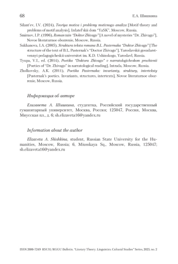 8. Суханова 2005 - Суханова И.А. Структура текста романа Б.Л. Пастернака «Доктор Живаго». Ярославль: Ярославский государственный педагогический ун-т им. К.Д. Ушинского, 2005. 147 с.
