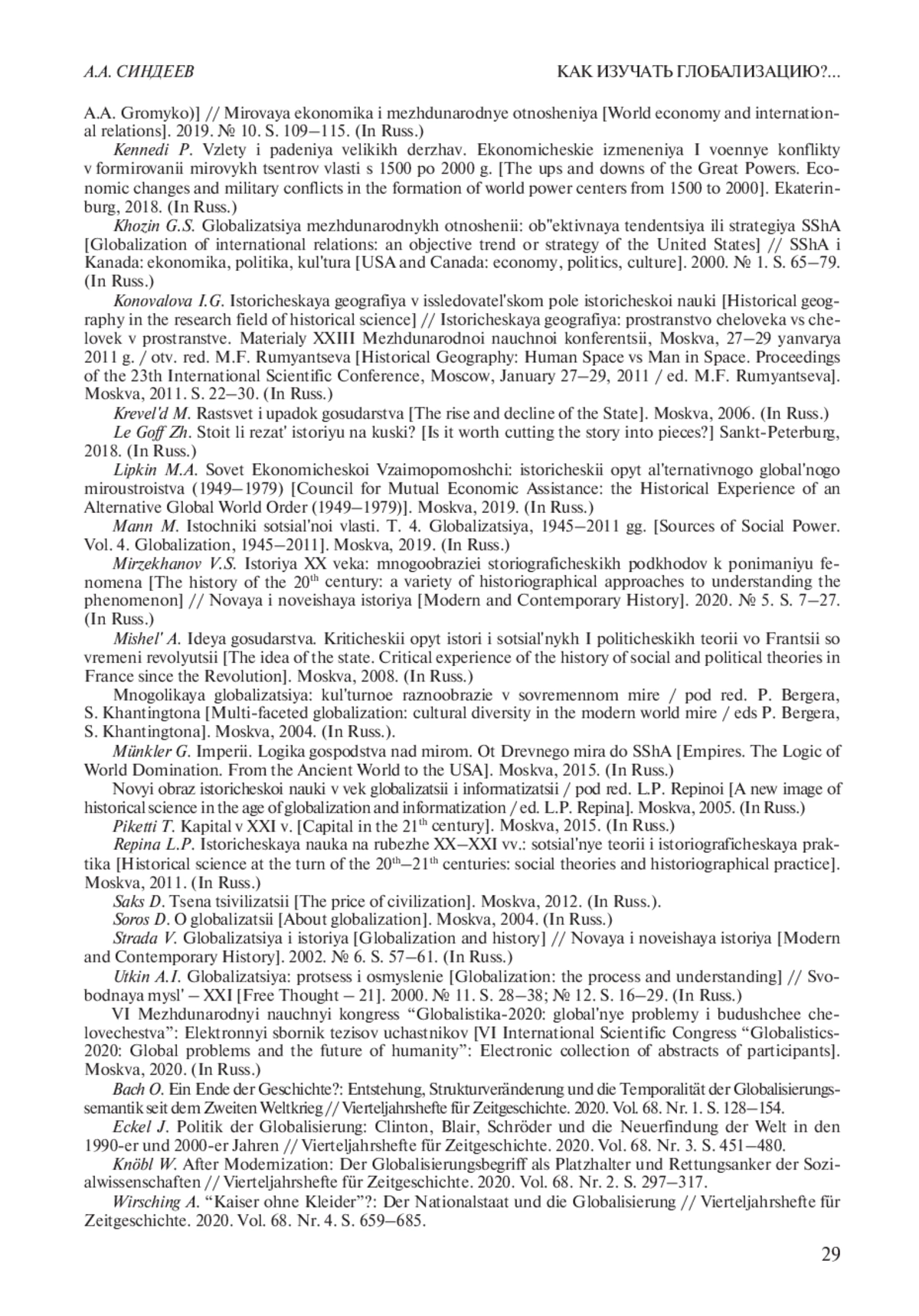 28. Knöbl W. After Modernization: Der Globalisierungsbegriff als Platzhalter und Rettungsanker der Sozialwissenschaften // Vierteljahrshefte für Zeitgeschichte. 2020. Vol. 68. Nr. 2. S. 297-317.