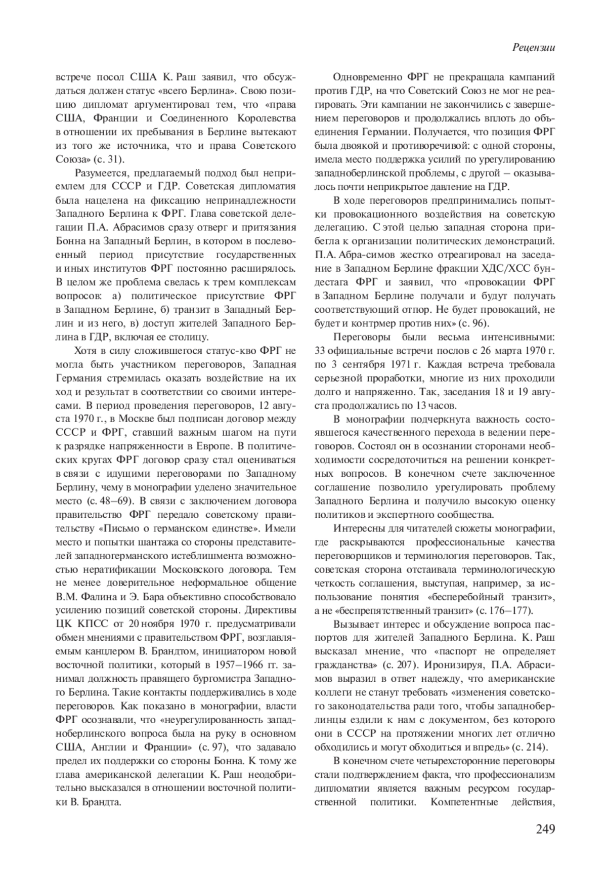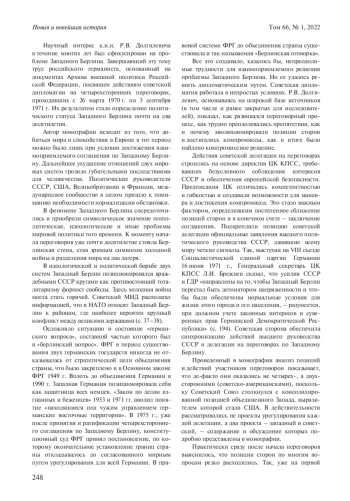 Статья: ИСКУССТВО ПЕРЕГОВОРОВ И РЕШЕНИЕ БЕРЛИНСКОГО ВОПРОСА (Р. В. ДОЛГИЛЕВИЧ. СОВЕТСКАЯ ДИПЛОМАТИЯ НА ЧЕТЫРЕХСТОРОННИХ ПЕРЕГОВОРАХ ПО ЗАПАДНОМУ БЕРЛИНУ (26 МАРТА 1970 Г. - 3 СЕНТЯБРЯ 1971 Г.) / ПРЕДИСЛ. И ПУБЛ. Р. В. ДОЛГИЛЕВИЧ. СПБ., 2021) (2022)