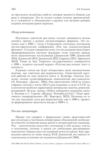 4. Доманский 1999 - Доманский Ю.В. Русская рок-поэзия: проблемы и пути изучения // Русская рок-поэзия: текст и контекст: Сб. науч. трудов. Тверь: Тверской государственный ун-т, 1999. Вып. 2. URL: https://cyberleninka.ru/article/n/russkaya-rok-poeziya-problemy-i-puti-izucheniya (дата обращения 29.03.2024). Доманский 2010 -