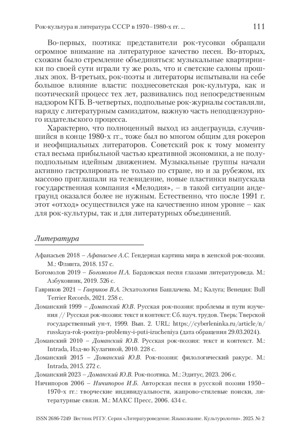 7. Доманский 2023 - Доманский Ю.В. Рок-поэтика. М.: Эдитус, 2023. 206 с.