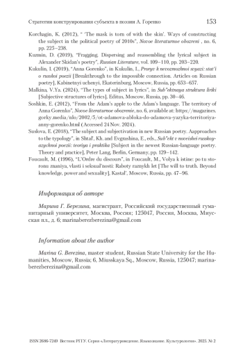 7. Малкина 2024 - Малкина В.Я. Типы субъектов в лирике // Субъектная структура лирики. М.: Эдитус, 2024. С. 30-46.