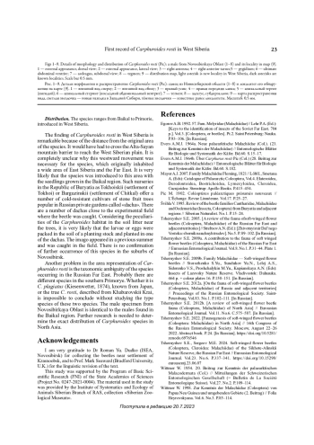 10. Tshernyshev S.E. 2012a. [On the fauna of soft-winged flower beetles (Coleoptera, Malachiidae) of Russia and adjacent territories] // Proceedings of the Russian Entomological Society. Saint-Petersburg. Vol.83. No.1. P.102-111. [In Russian].