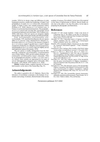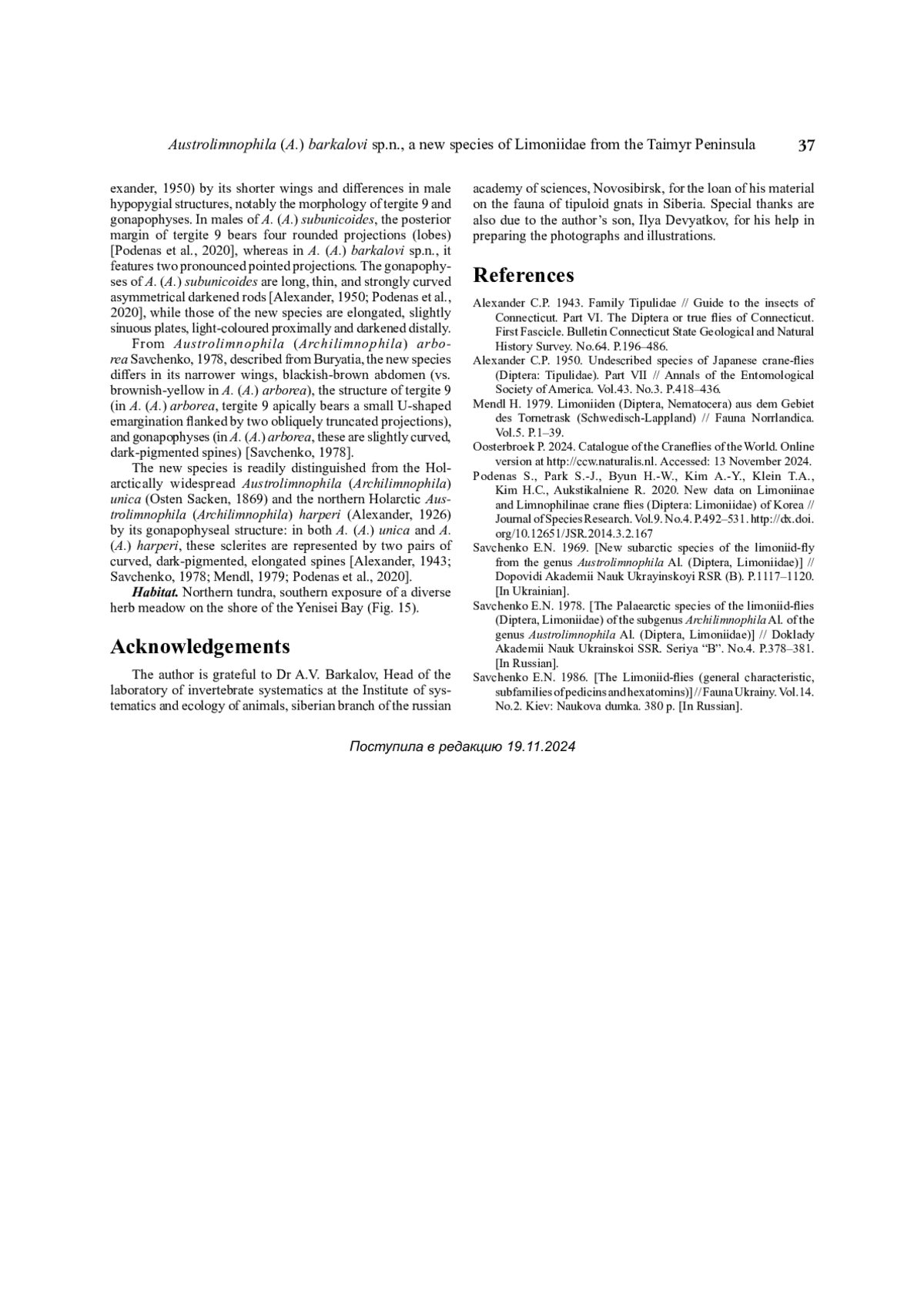 DEVYATKOV V.I. AUSTROLIMNOPHILA (ARCHILIMNOPHILA) BARKALO! I SP. N. — НОВЫЙ ВИД КОМАРОВ LIMONIIDAE (DIPTERA) С ПОЛУОСТРОВА ТАЙМЫР // ЕВРАЗИАТСКИЙ ЭНТОМОЛОГИЧЕСКИЙ ЖУРНАЛ. 2025. № 1, ТОМ 24