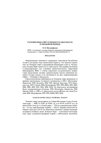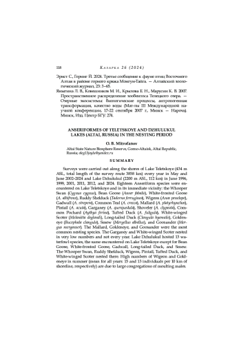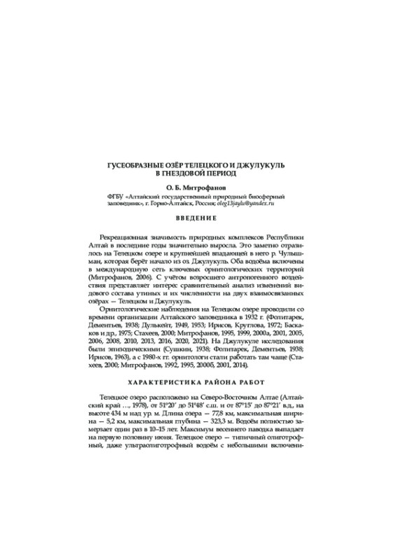 25. Митрофанов О. Б. 2020. Новые данные о миграции крупных представителей отряда Гусеобразные на Телецком озере. - Труды Тигирекского заповедника. Вып. 12. Барнаул: 82-86.