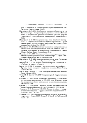 26. Митрофанов О. Б. 2021. Аннотированный список птиц Алтайского заповедника: Неворобьиные. Горно-Алтайск: 1-190.