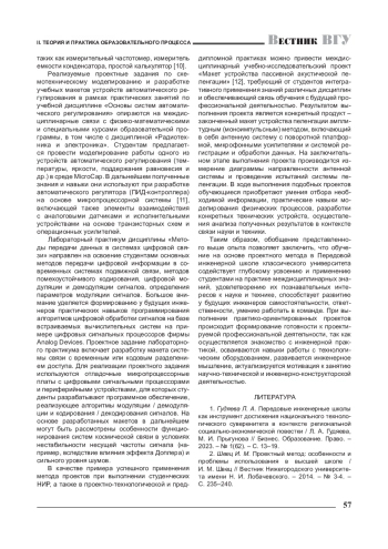 8. Лозовская Л. Б. Особенности применения измерительных информационных систем в лабораторном практикуме дисциплин инженерных специальностей / Л. Б. Лозовская, О. А. Морозов, В. А. Новиков // Вестник Нижегородского университета имени Н. И. Лобачевского. Сер.: Социальные науки. -2019. - № 3(55). - С. 195-200. EDN: QASZDX
