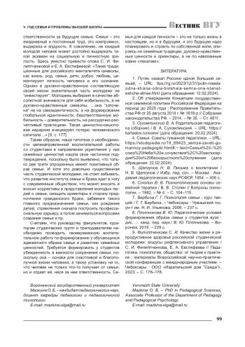 8. Плотникова В. Ю. Педагогические условия формирования образа семьи у студентов вуза: дис.. канд. пед. наук./ В. Ю. Плотникова. - Воронеж, 2019. - 229 с. EDN: LNDNZB