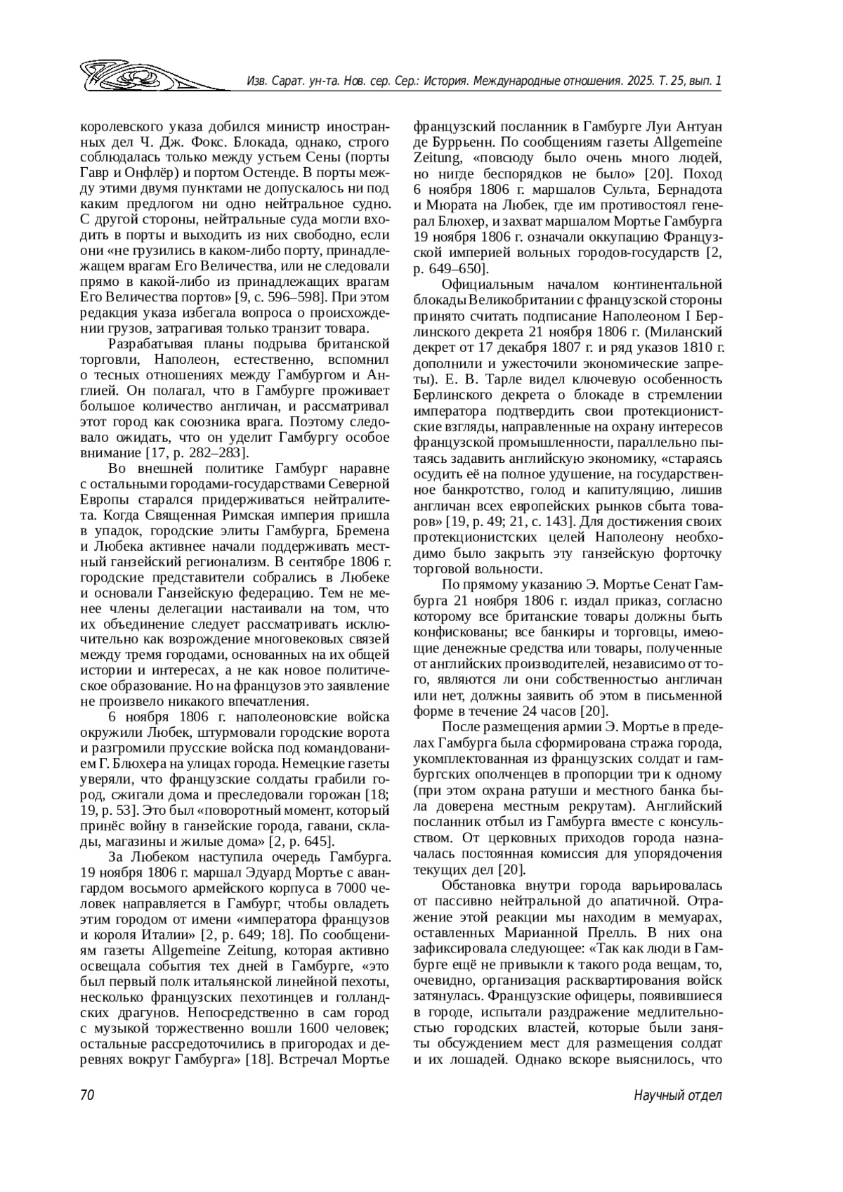 7. Aaslestad K. B. War without Battles: Civilians Experiences of Economic Warfare during the Napoleonic Era in Hamburg // Forrest A., Hagemann K., Rendall J. Soldiers, Citizens and Civilians: Experiences and Perceptions of the Revolutionary and Napoleonic Wars, 1790-1820. London: Palgrave Macmillan, 2009. P. 118-136.