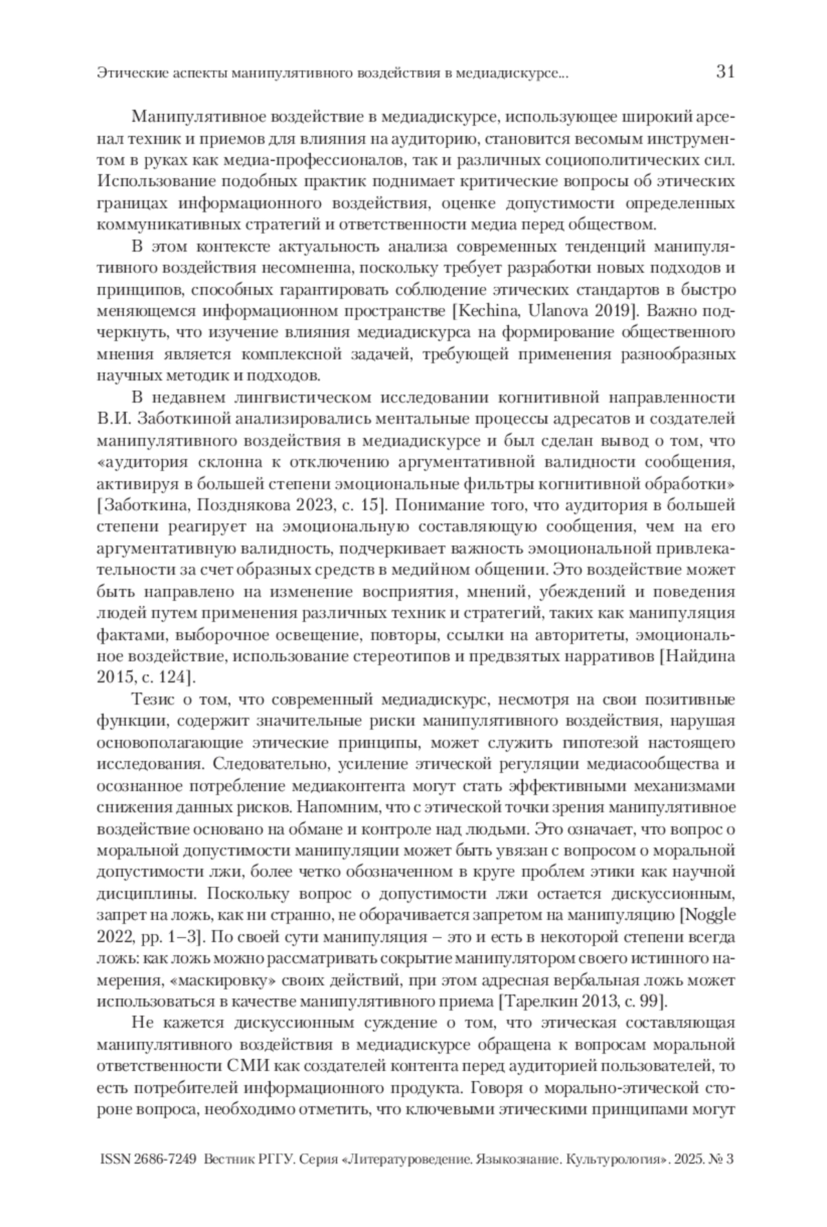 4. Моргун 2023 - Моргун Н.Ю. Формирование общественных взглядов посредством медиадискурса // Russian Linguistic Bulletin. 2023. № 12 (48). URL: https://rulb.org/archive/12-48-2023-december/10.18454/RULB.2023.48.47 (дата обращения 20 декабря 2024).