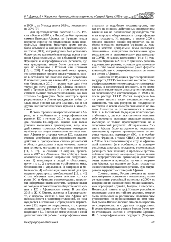 Статья посвящена соперничеству Франции и России в Северной Африке в 2010-х гг., когда распространение «арабской весны» в этом регионе исказило существовавший политический ландшафт. Рассматривается политика Франции на североафриканском направлении, а также интересы и задачи России в регионе. Отмечается изменение политико-экономических связей государств Северной Африки с мировыми авторами в условиях увеличения частоты кризисов в мировой энергетической сфере и постепенного ухудшения политической ситуации между ЕС и Россией.